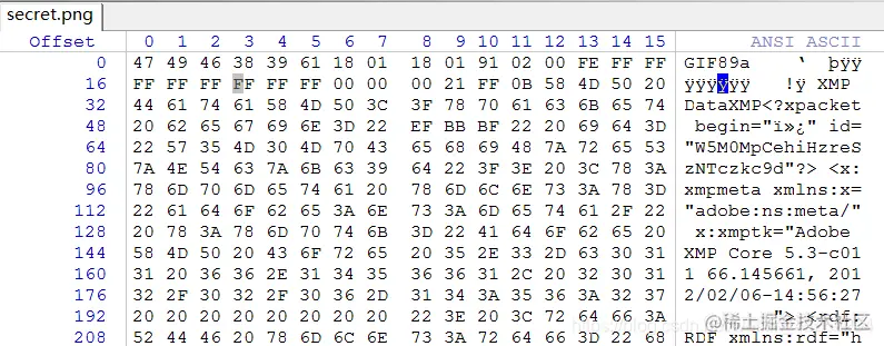 使用winhex对该文件进行分析,发现其文件头为GIF,修改后缀为.gif