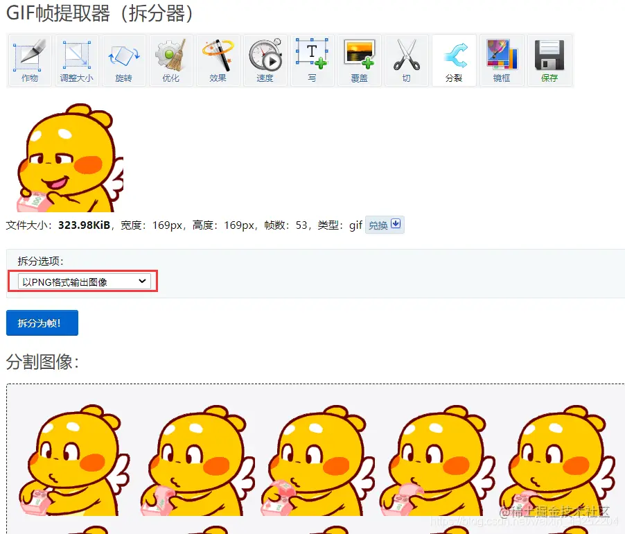 使用在线GIF帧提取器(拆分器):Split GIF image in frames