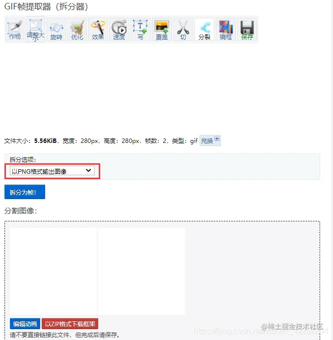 使用在线GIF拆分工具对该gif文件进行分解得到两张png的图片