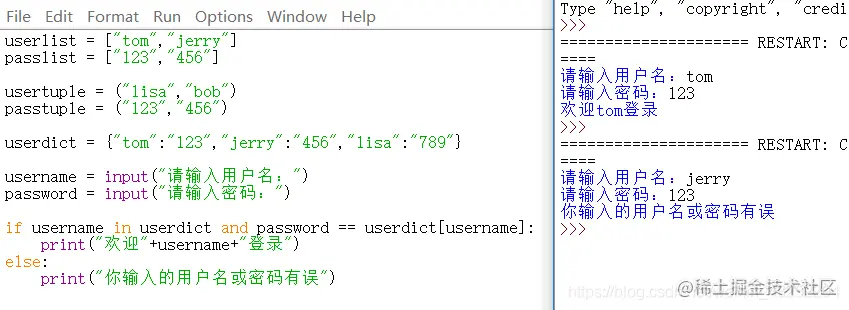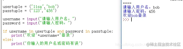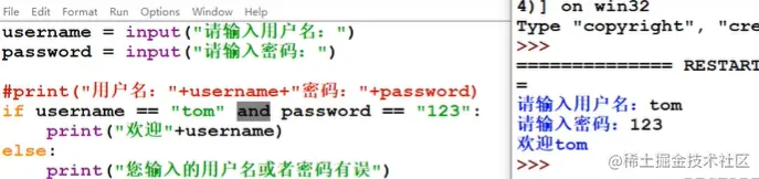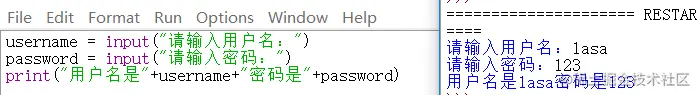 print("用户名是"+username+"密码是"+password)