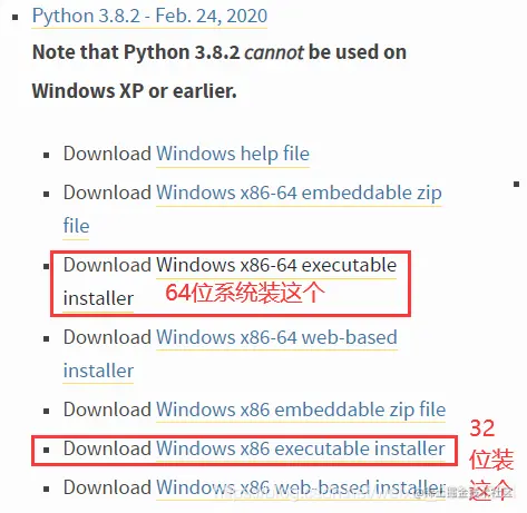 这里笔者也为大家整理了python3.8.2的64位和32位的安装包: