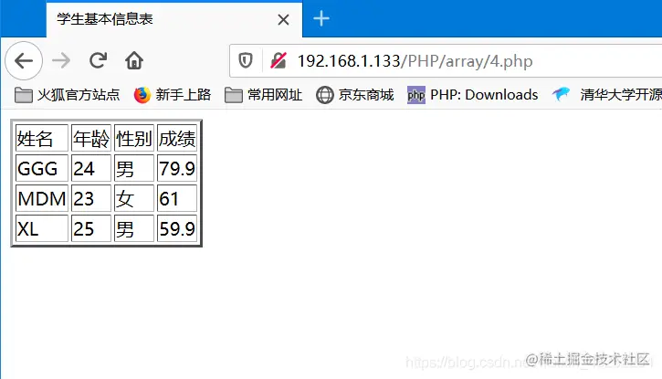 4.php(创建表格)