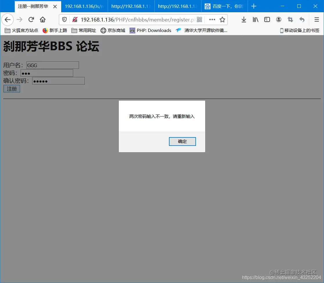 就会发生鼠标响应事件,JS就会执行,来判断两次输入的密码是否一致
