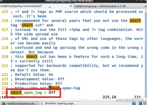 short open tag = ON 修改文件内短标记功能为ON