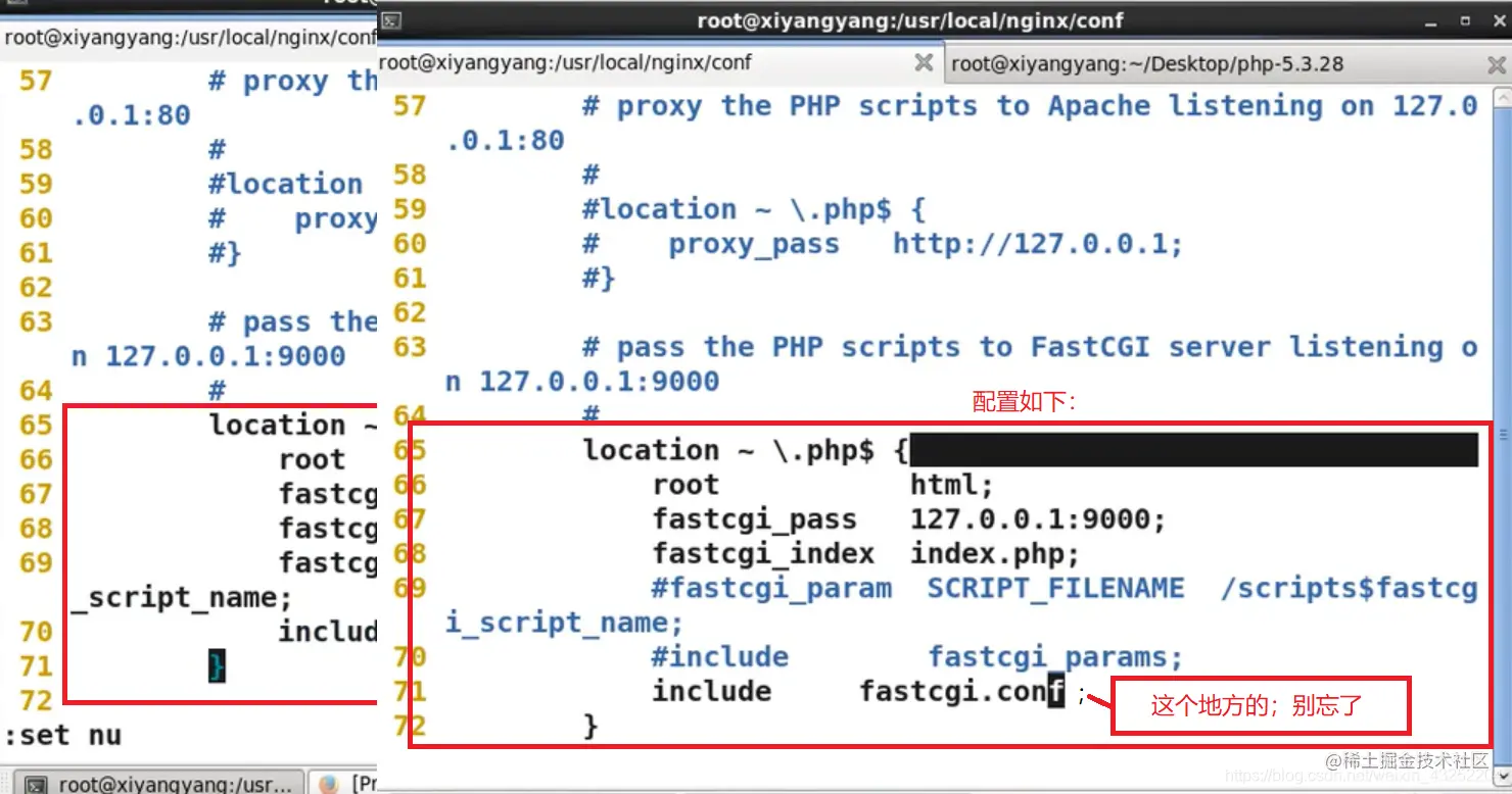 修改nginx配置文件使其调用php-fpm进程