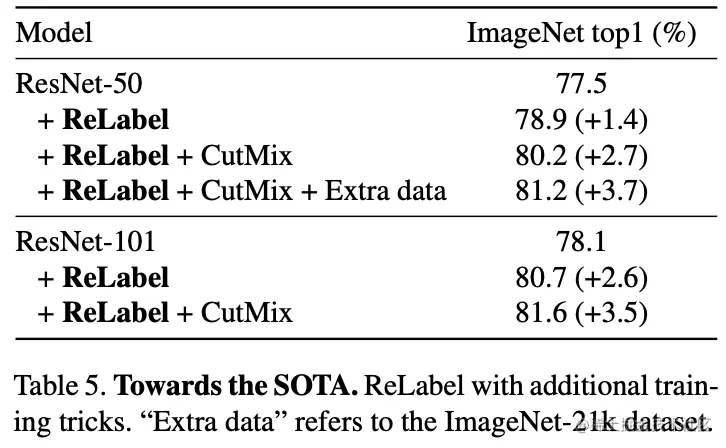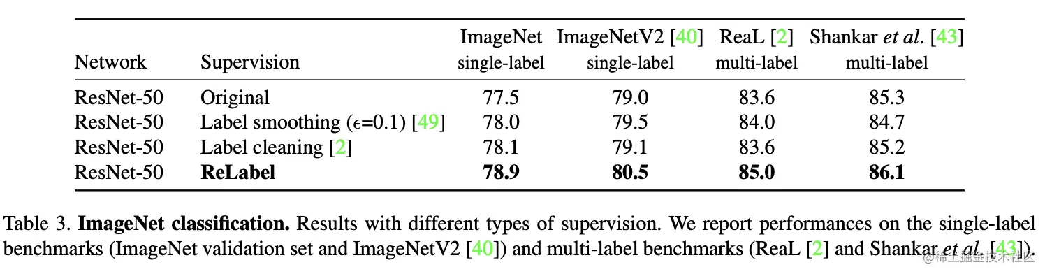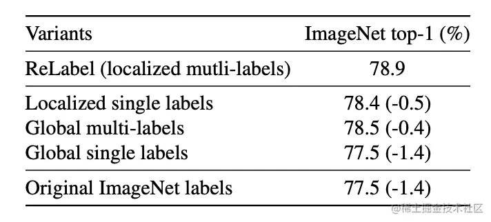 结果如上图所示,论文提出的ReLabel实现方式效果最好。
