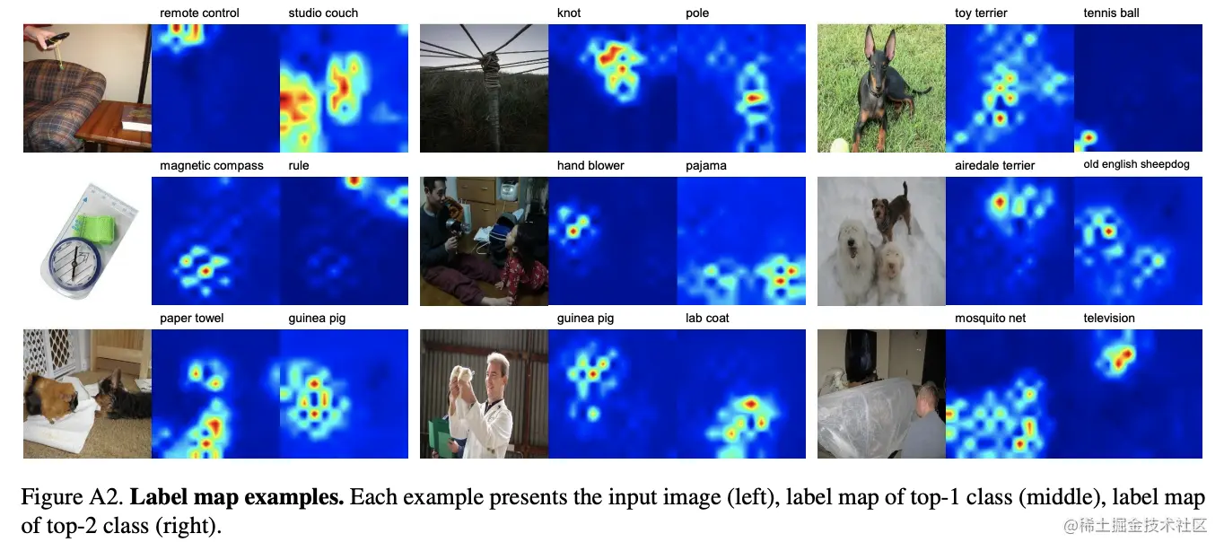 论文也对ReLabel在不同IoU情况下的监督能力进行了探讨,记录5百万张random crop的图片与GT的IoU以及ReLabel输出的最大标签分数,结果如上图所示,标签分数与IoU正相关。当IoU非常小时,标签分数也非常小,这就相当于给网络训练提供了一个训练目标不确定的信号。