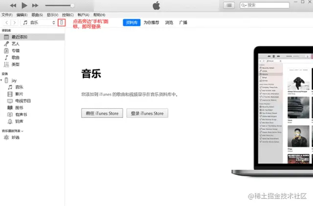 第1步:从桌面电脑上打开iTunes并找到一根数据线连接手机,接着点击页面中左上方的“手机”按钮,则可以进行快速的登录;