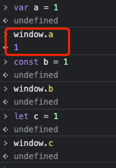 - let 和 const 声明的变量,在全局作用域下不会被挂在到全局对象中,浏览器为 window,node 为 global