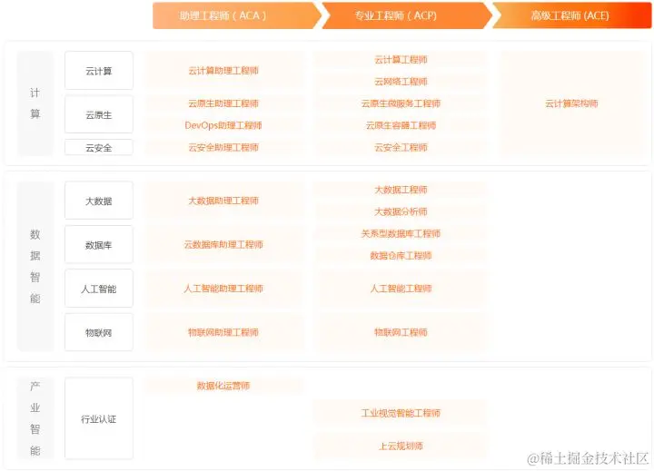 另外,阿里云的认证体系很全面,细分了各个方向,对于迷茫期的同学来说,可以边学习边选择,因为它可以满足你任何方向的认证需求,帮助你明确未来的发展方向。