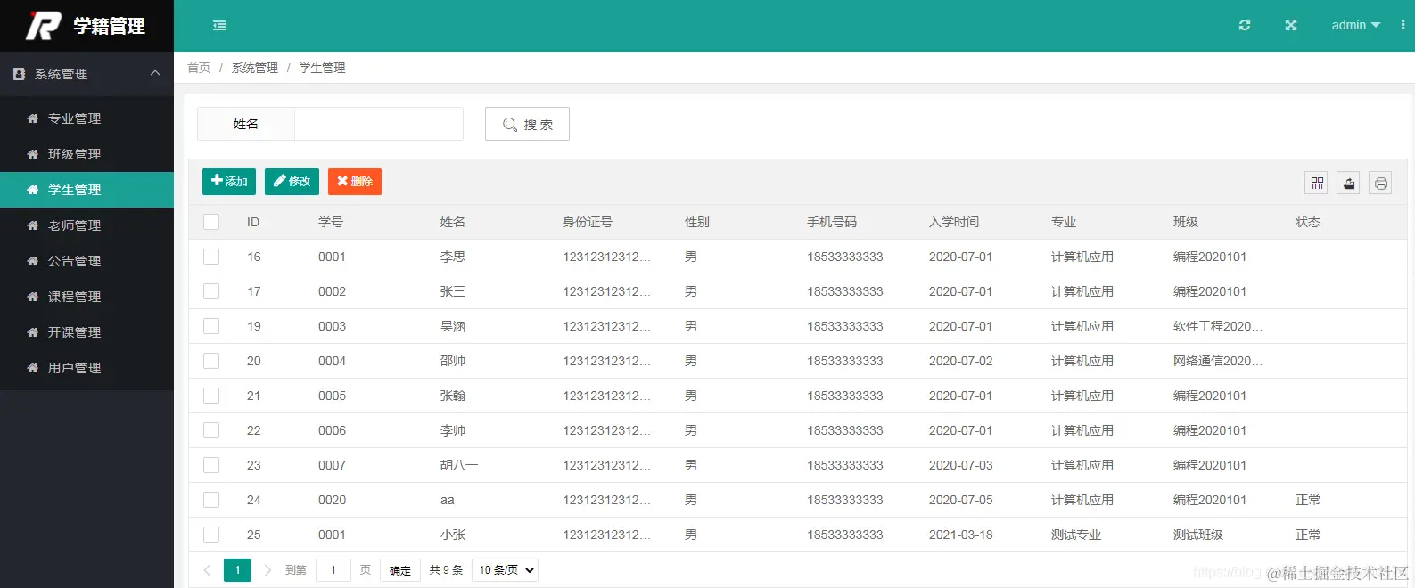 以上是基于SSM实现的学籍管理系统的部分功能展示,本系统功能完整,界面美观,适合做毕业设计使用。