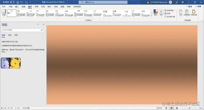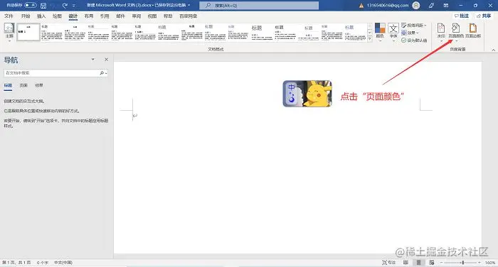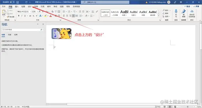 第1步:打开你的word文档后,点击上方菜单栏的“设计”;