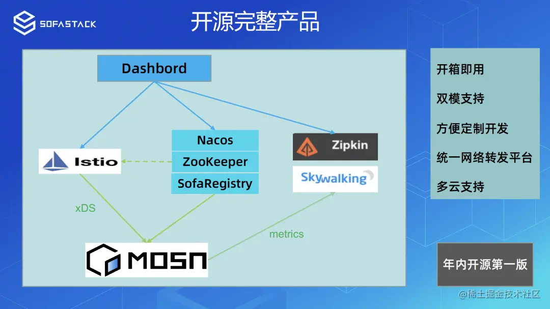 MOSN 目前作为数据面的呈现,产品能够包含一整套解决方案,我们的第一目标是达到开箱即用的效果。