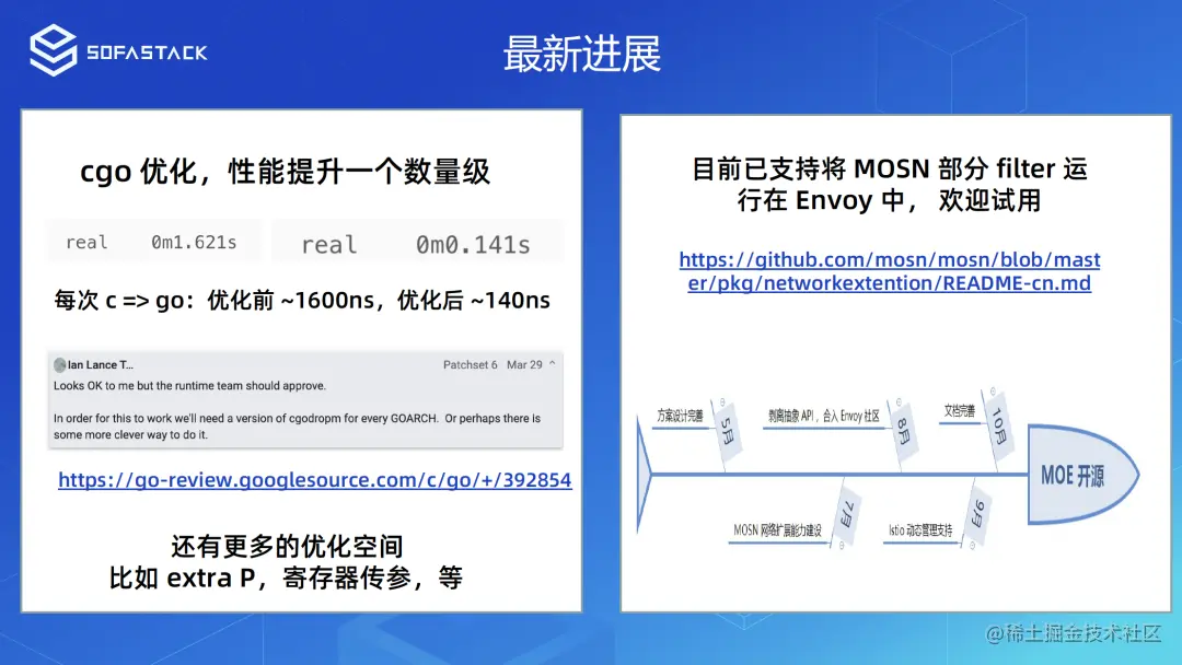 MoE 就是 MOSN 加 Enovy。我们希望能够做把两者的优势给融合起来,相互融合,各取所长,把高性能和高研发效能结合到一起,支持我们做大做强,走得更远。