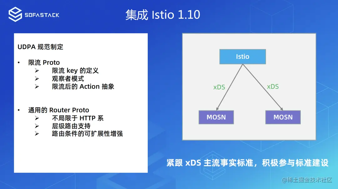 我们在标准的制定过程中,积极提案参与讨论,比如说限流的和路由的 proto,也正是我们和 Istio 有非常多的合作,才能够获得 Istio 官方的推荐。