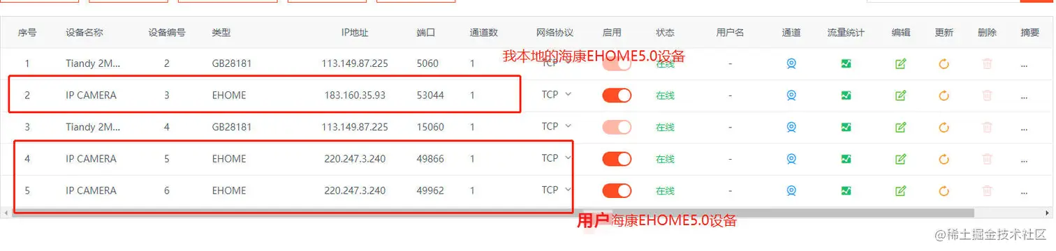 于是我们在本地测试,尝试将海康设备通过Ehome5.0接入,Windows系统内外网可正常注册上线,Linux系统内网环境可正常注册上线,但公网环境无法注册。于是排查搭建环境进行测试,原来Ehome2.0接入使用的是udp:7660端口接入,但Ehome5.0接入需要同时开放tcp:7660端口。