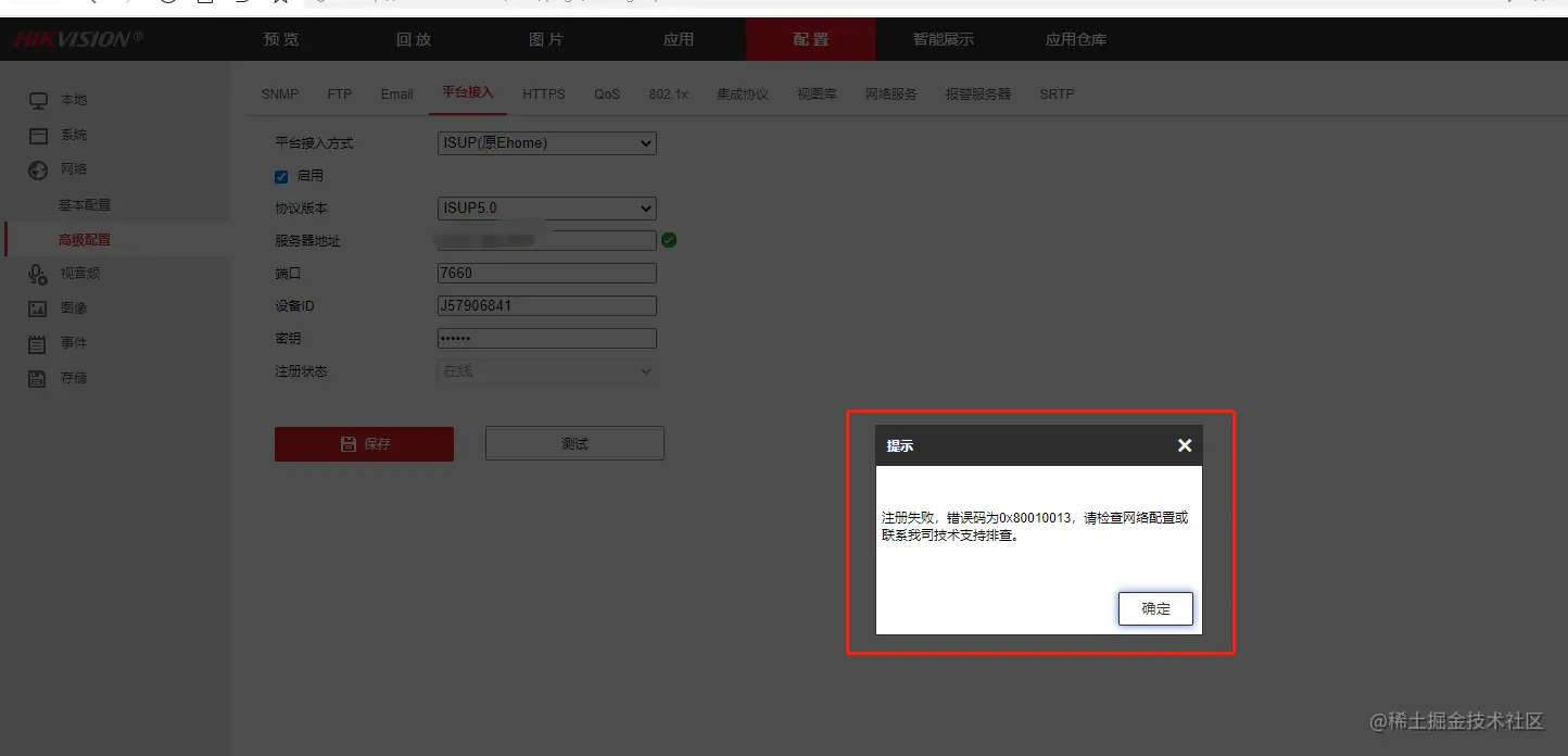 近日某项目现场反馈,使用海康摄像头Ehome5.0接入EasyCVR平台后,设备无法注册上线,提示注册失败。但是使用Ehome2.0则可正常注册上线,设备也播放正常。