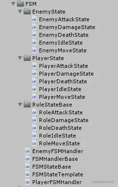 因为现在的项目只区分敌人和玩家,而且两者有一部分状态相同或类似,我增加了一个角色状态基类"Role***State",继承了状态基类"StateBase",然后再有"Player***State"和"Enemy***State",(也可以"Player***State"和"Enemy***State"直接继承"StateBase")