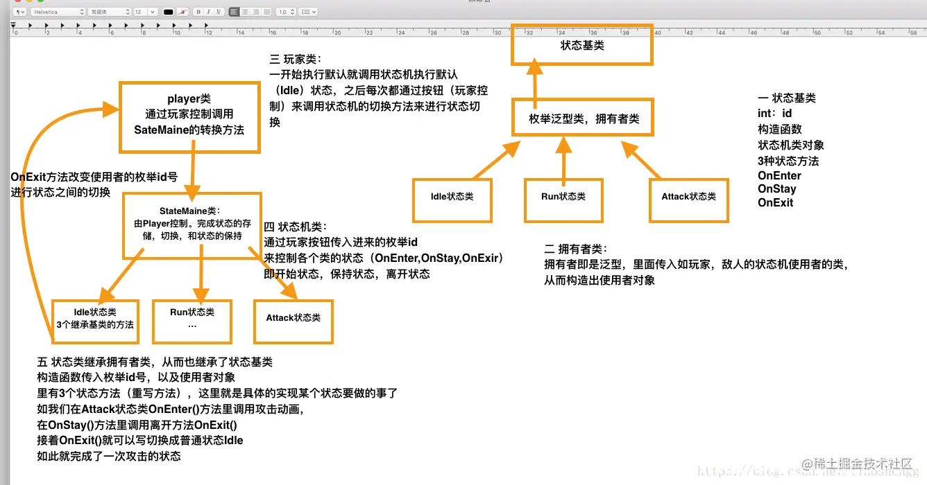 把所有的角色状态类实现之后, 在角色类中创建状态管理器,并加入该角色的所有状态类即可