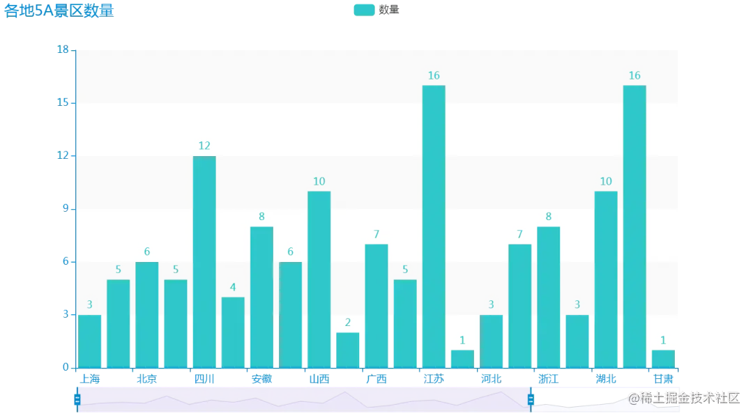 我们再来看一下各省级行政区划的 5A 级景区数量情况,主要代码实现如下: