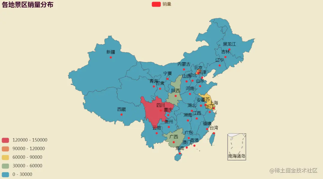 title_opts=opts.TitleOpts(title='各地景区销量分布'),