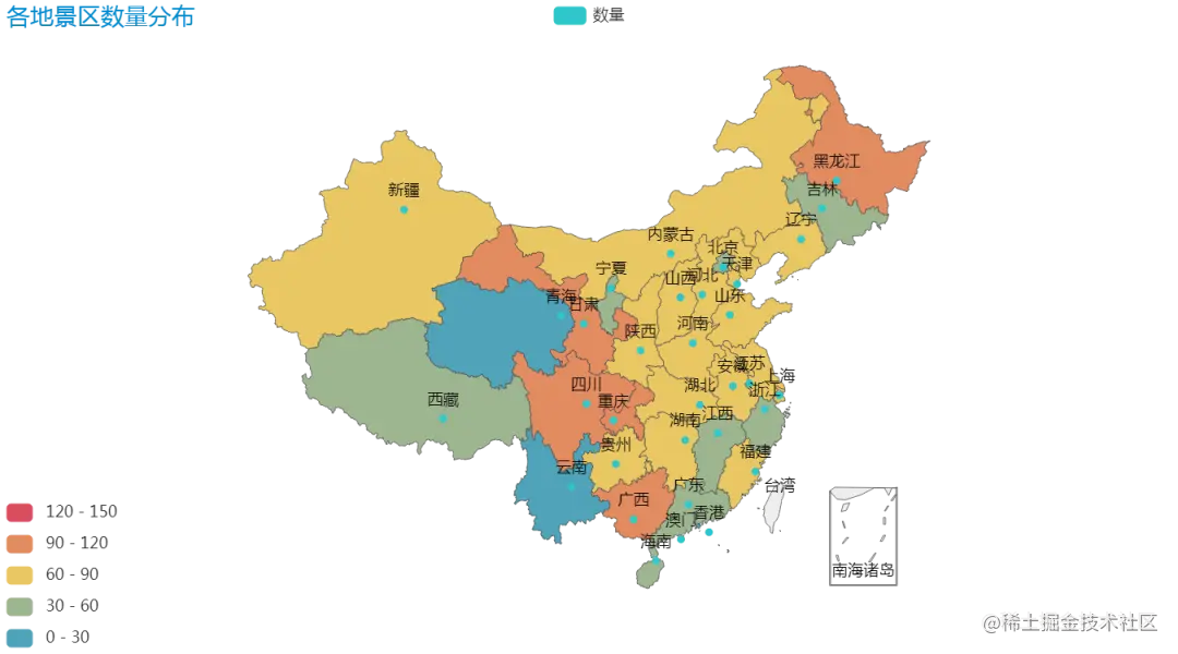 title_opts=opts.TitleOpts(title='各地景区数量分布'),