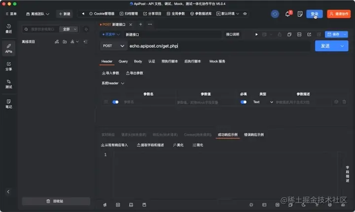 Apipost 6 客户端支持不登录使用。功能原则是在未登录状态下,完全满足个人开发者的需求: