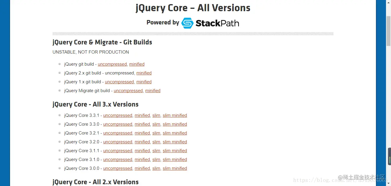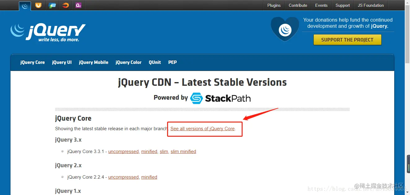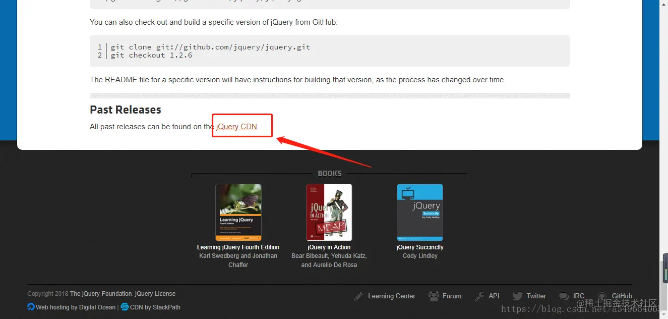 拉到底部,点击这里,我们可以看到过去jQuery发布的版本