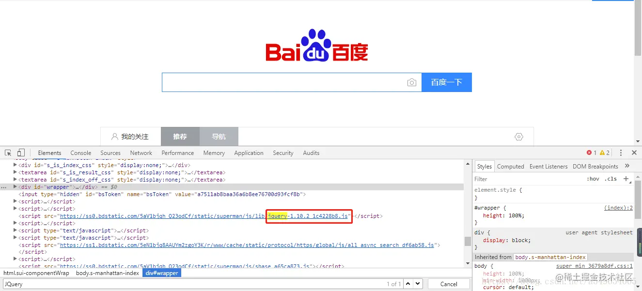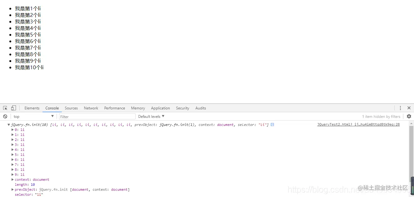 从示例1-2里,我们打印了jQuery对象,展开可以看到,jQuery对象就像是DOM对象的集合,封装了DOM对象。