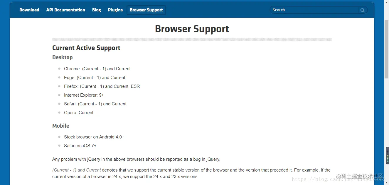 下载版本时要注意浏览器的兼容问题,从jQuery2.0起就不再兼容IE6-8,国内使用JQuery主要是为了兼容IE6-8,所以我这里下载1.x版本的