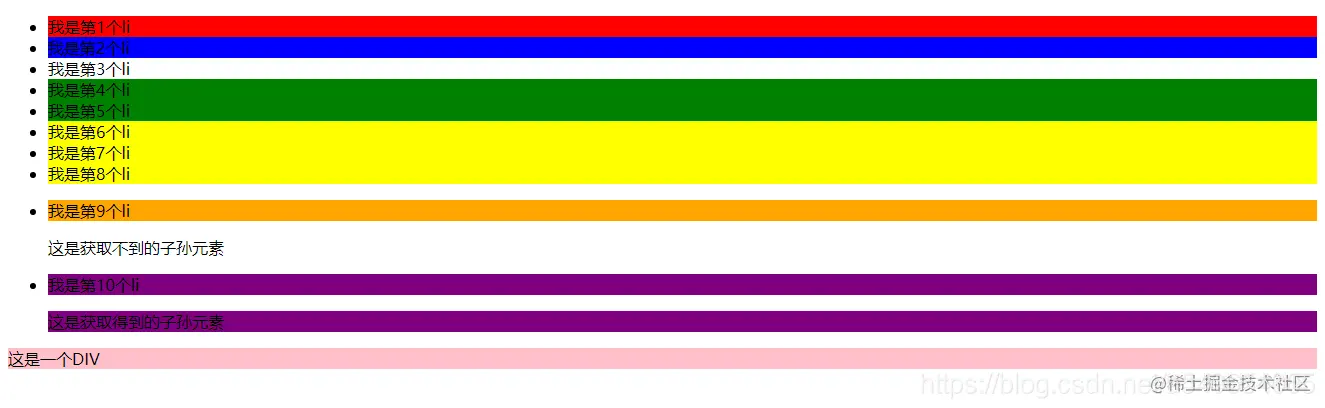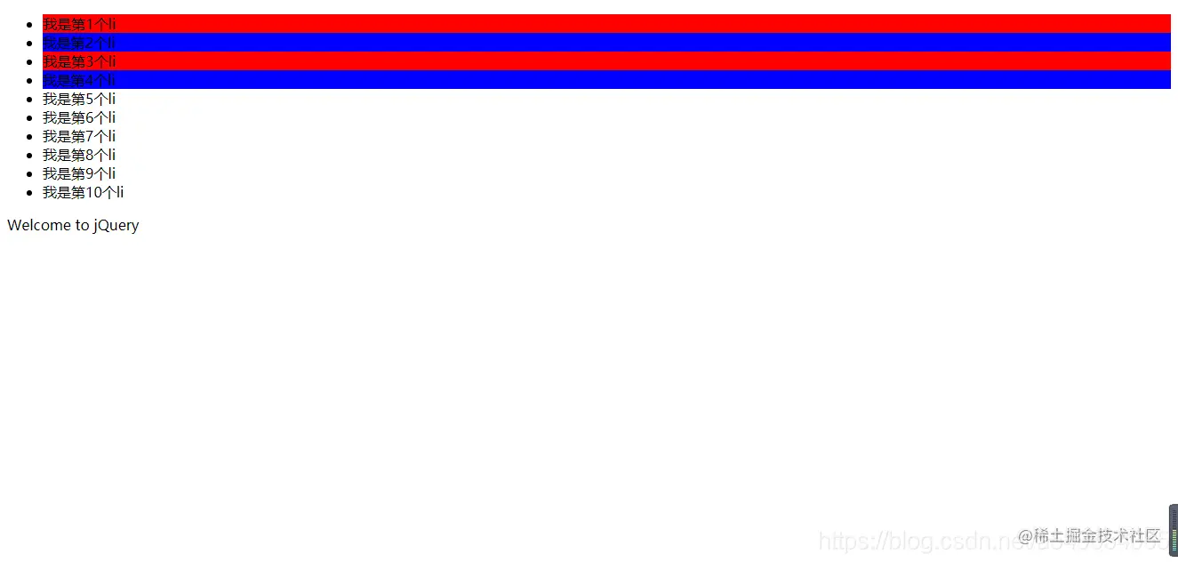 | :even | $(“li:even”).css(“color”, ”red”); | 获取到的li元素中,选择索引号为偶数的元素 |