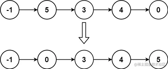 输入: head = [-1,5,3,4,0]