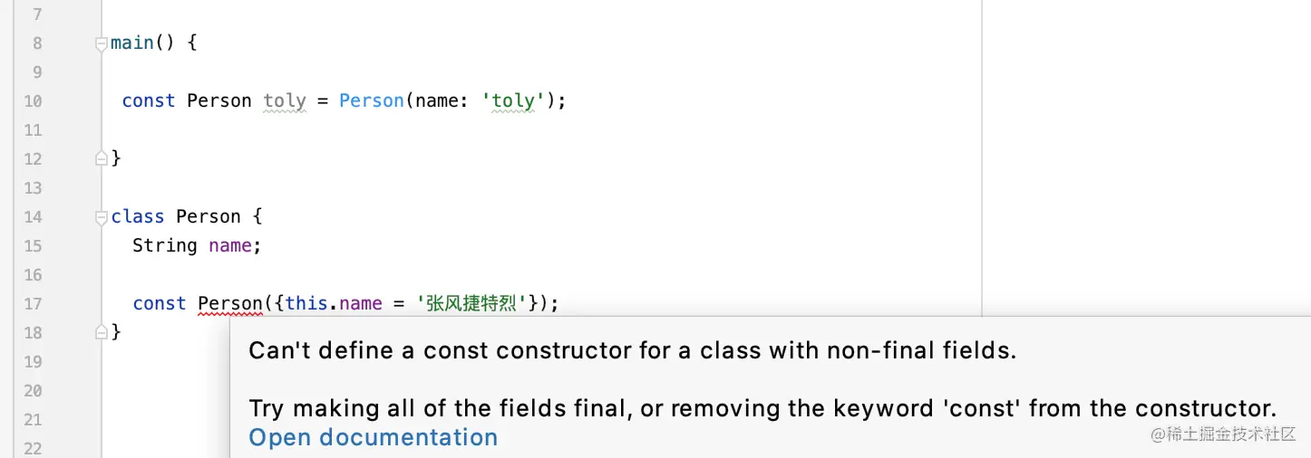 [2]. 使用 const 构造方法的类中,其所有成员属性必须以 final 修饰。