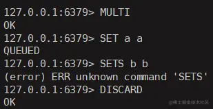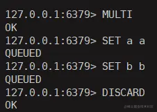 得出结论: 事务的DISCARD返回肯定是OK, 绝对执行成功, 不会失败