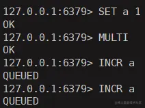 再开启一个事务, 进行set和incr操作, , 这里因为incr了一个 string的数据,