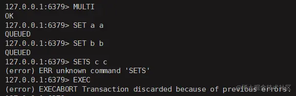 再执行事务 , 可以看出命令错误, 但是取消还是执行了,