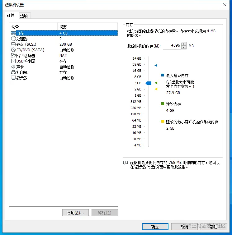 1.在 Windows 中安装 VMware,默认安装即可,在设置硬盘空间时考虑后续下载文件需要可以设置稍大,我设置的是 200G。后续不满足需求可以重新配置,配置信息参考:
