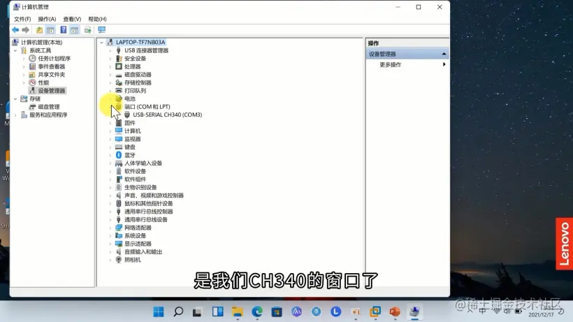 我的电脑–>右键–>管理–>设备管理器–>端口(COM 和 LPT)–>USB-SERIAL CH340(COM3)