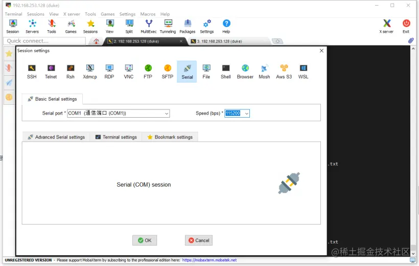 七、MobaXterm 查看串口打印日志