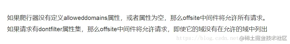 If the request has the dont_filter attribute set, the offsite middleware will allow the request even if its domain is not listed in allowed domains