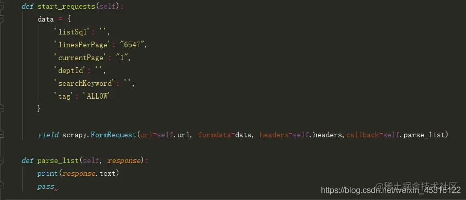scrapy 简单的post请求(先把我用的拿出来表示尊敬)