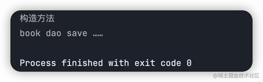 同样基于上一篇文章中的实例,配置好 <bean> 之后,然后在 BookDao 接口的实现中用构造方法来创建 Bean,最后在主程序入口中获取 Bean 之后调用方法,可以发现调用了构造方法。