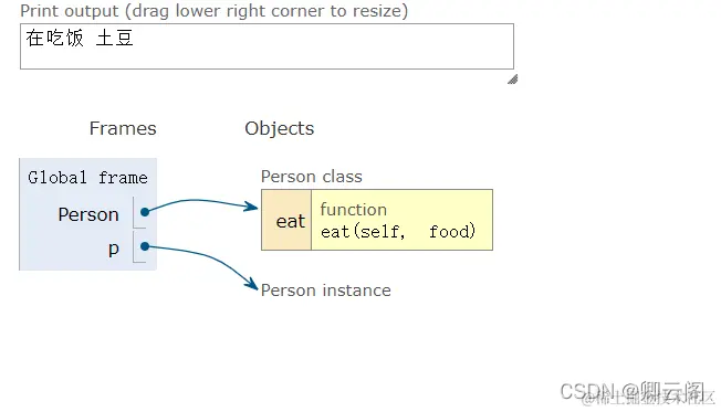 def eat(self,food):#self可以是aa、bb 等,一般是self
