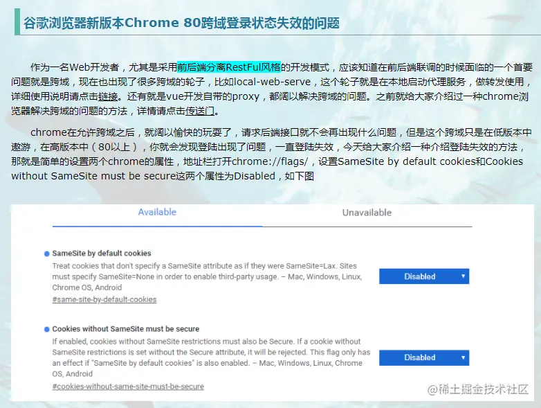 (新版谷歌浏览器的默认配置变动了,导致跨域门槛提高了,本身前端和后台的端口不同也是跨域,如果IP不同需要修改浏览器配置了。以前的谷歌浏览器没这个问题,可能以后的版本还会更新变更回来,火狐等非google内核的浏览器没这个问题,