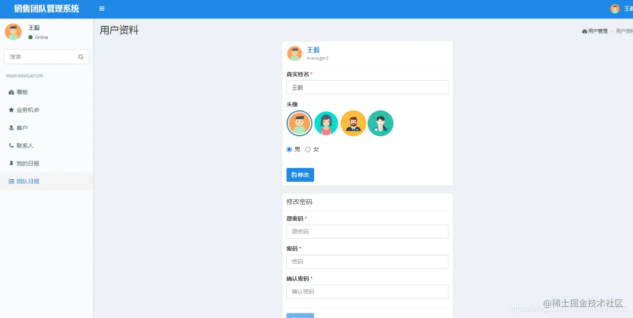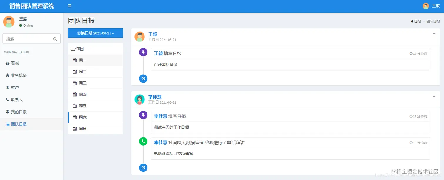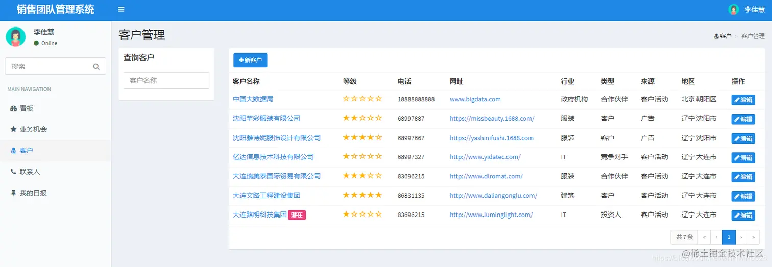 以上是展示的基于Springboot实现的销售团队管理系统,系统的功能比较完整,最大的亮点是前端界面设计的交互性非常好,操作也十分便利,比较适合做毕业设计使用。