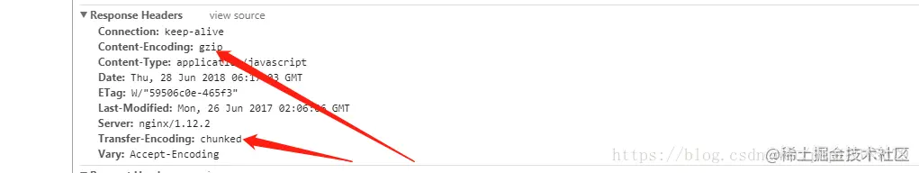 Content-Encoding:gzip 说明开启了gzip压缩