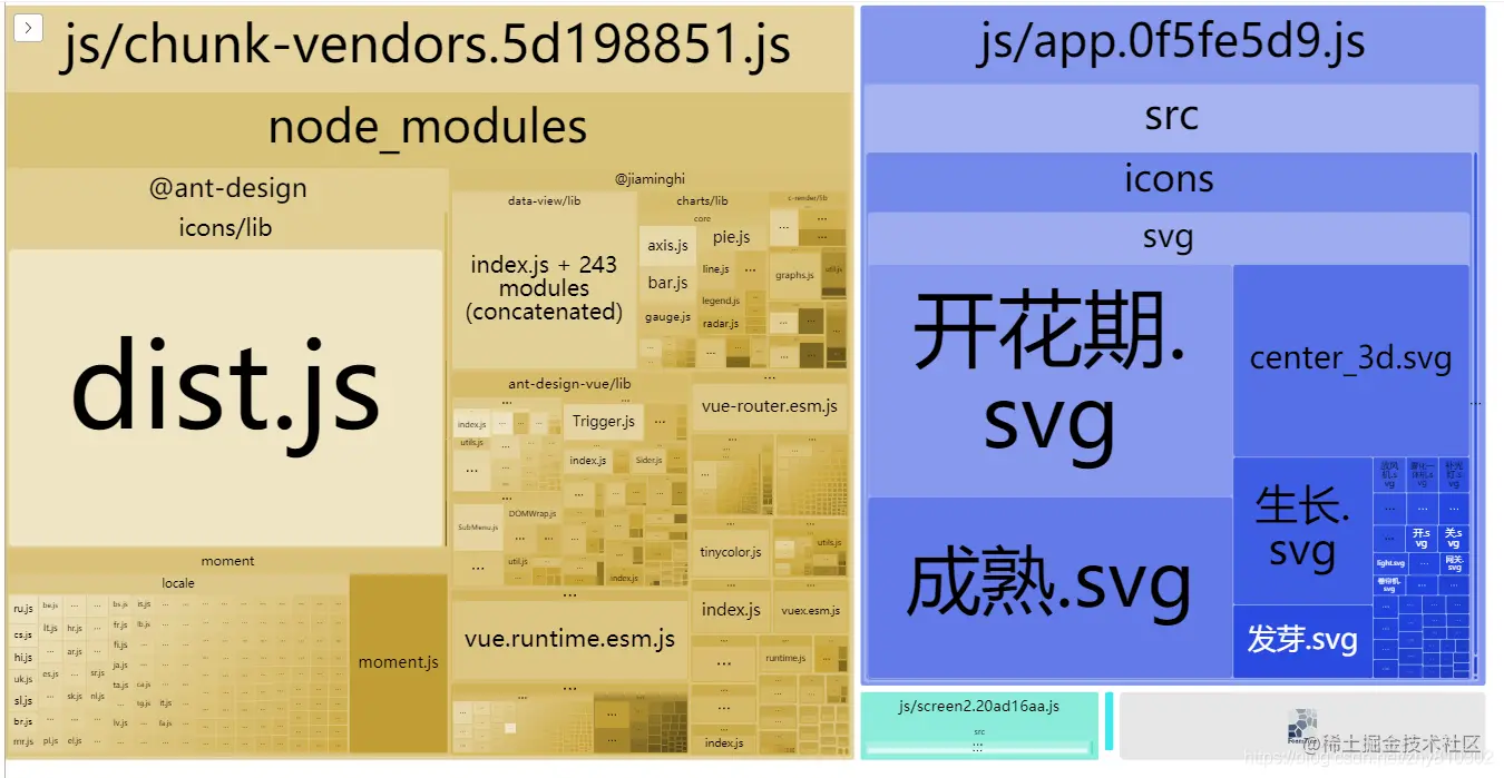会在浏览器打开一个项目打包的情况图,便于直观地比较各个bundle文件的大小。