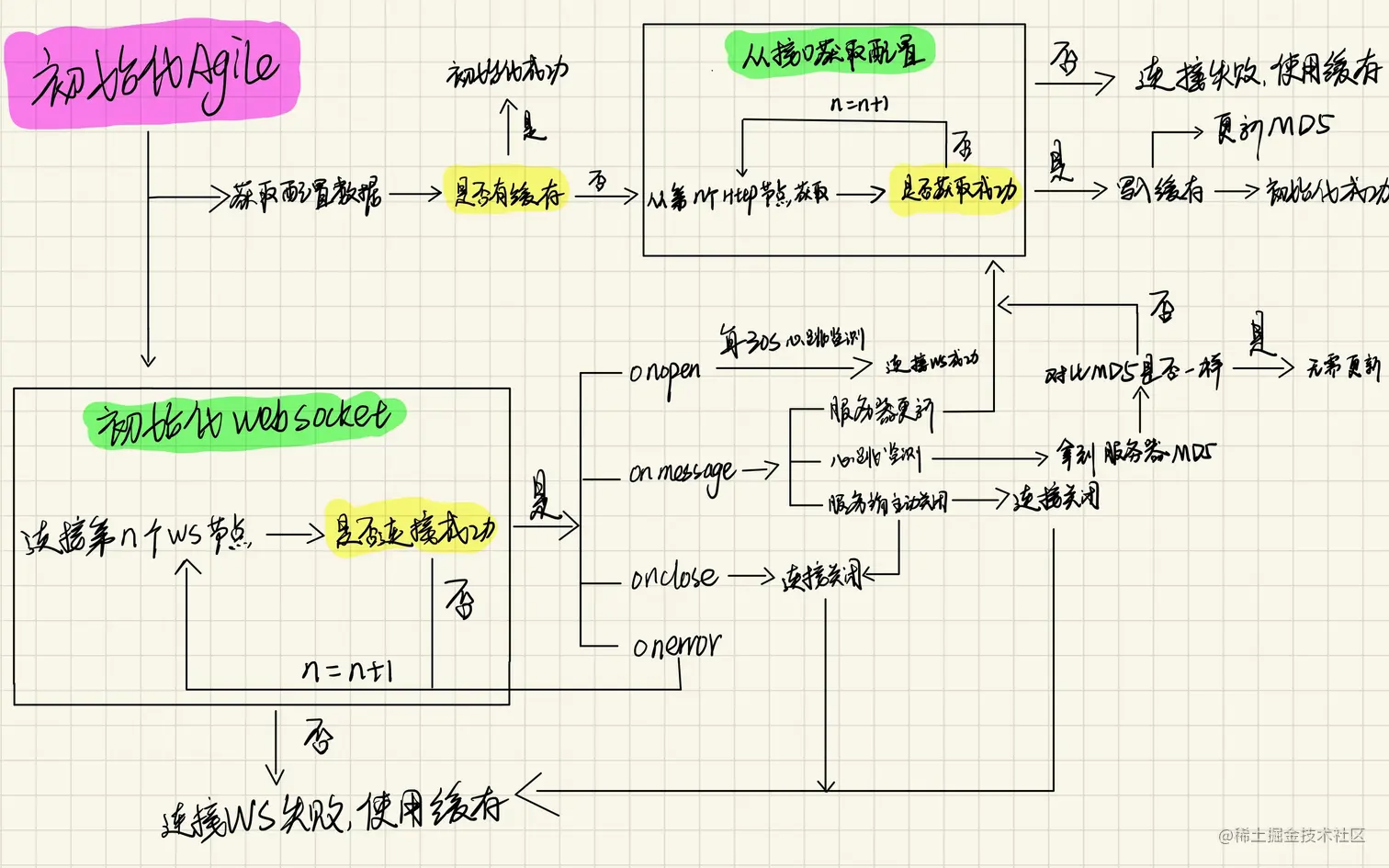 所以基于以上几个功能点,我画出了node-agile-client的完整工作原理流程图: