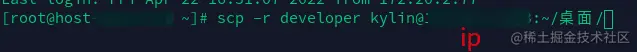 scp -P 4588 username@ip:/home/kylin/文件 /home/kylin/