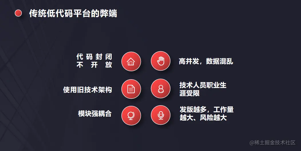 2013年采用过传统低代码平台,不是微服务模式,版本迭代需要全量进行测试,测试压力随着项目的增加而增加,数据量增大后,容易数据混乱。